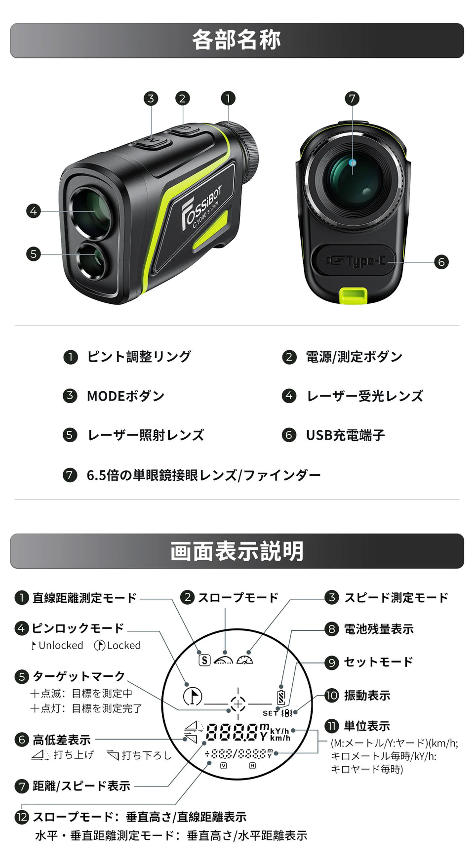 FOSSiBOT ゴルフレ-ザ一距離計 C1000