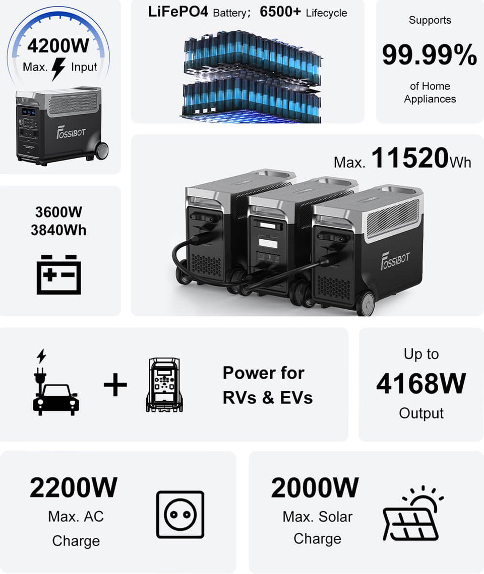 FOSSiBOT F3600 Proを家庭用電化製品やワークショップのプロ用ツールの電源の1つとして活用すれば、日々の電気代を節約できます。F3600 Pro+FB3840*2で毎年最大1000ドル節約できます