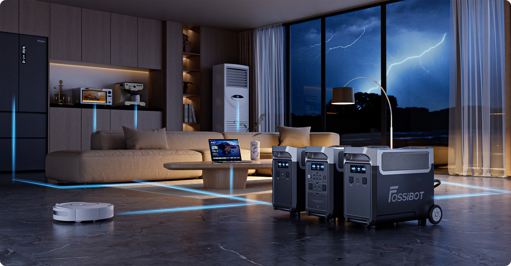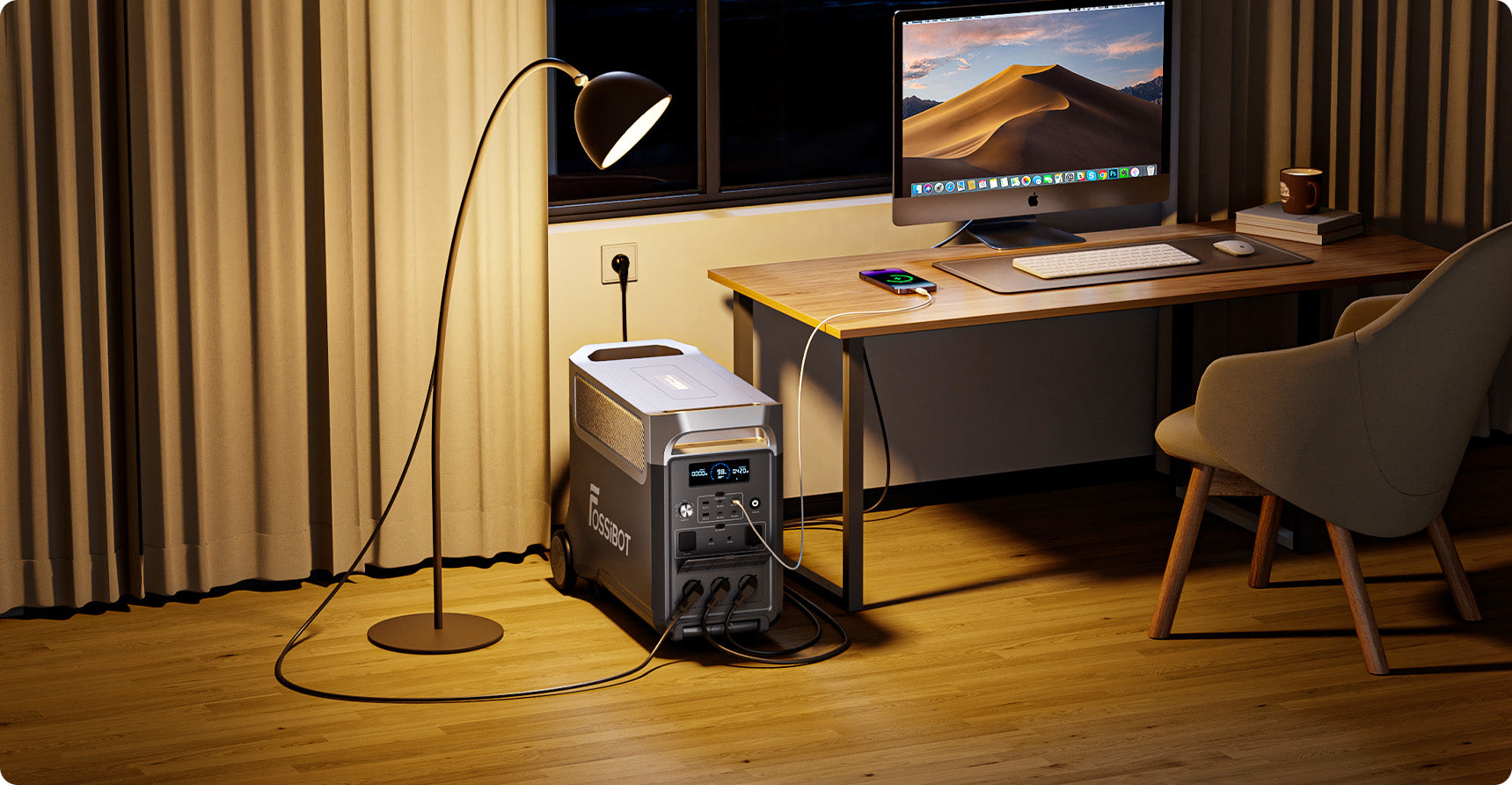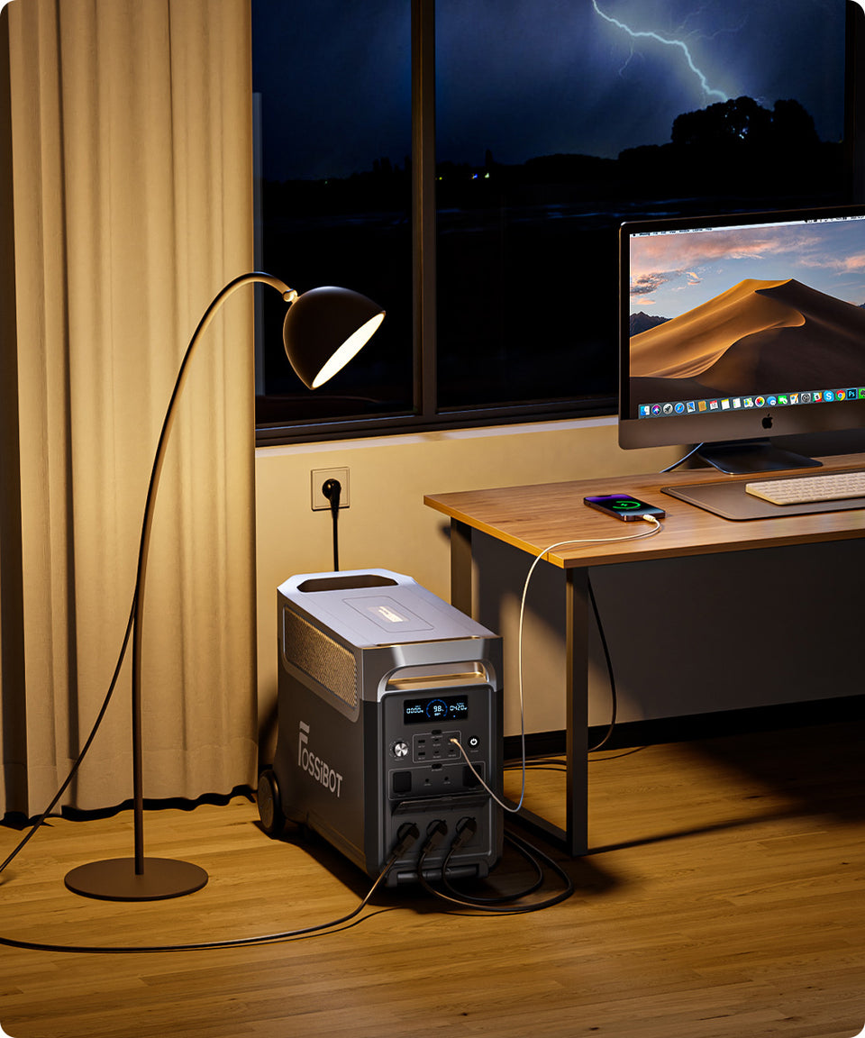 FOSSiBOTF3600 Proは、3600WのAC出力と3840Whの大容量で、緊急時に屯家庭の必需品を確実に動かします。