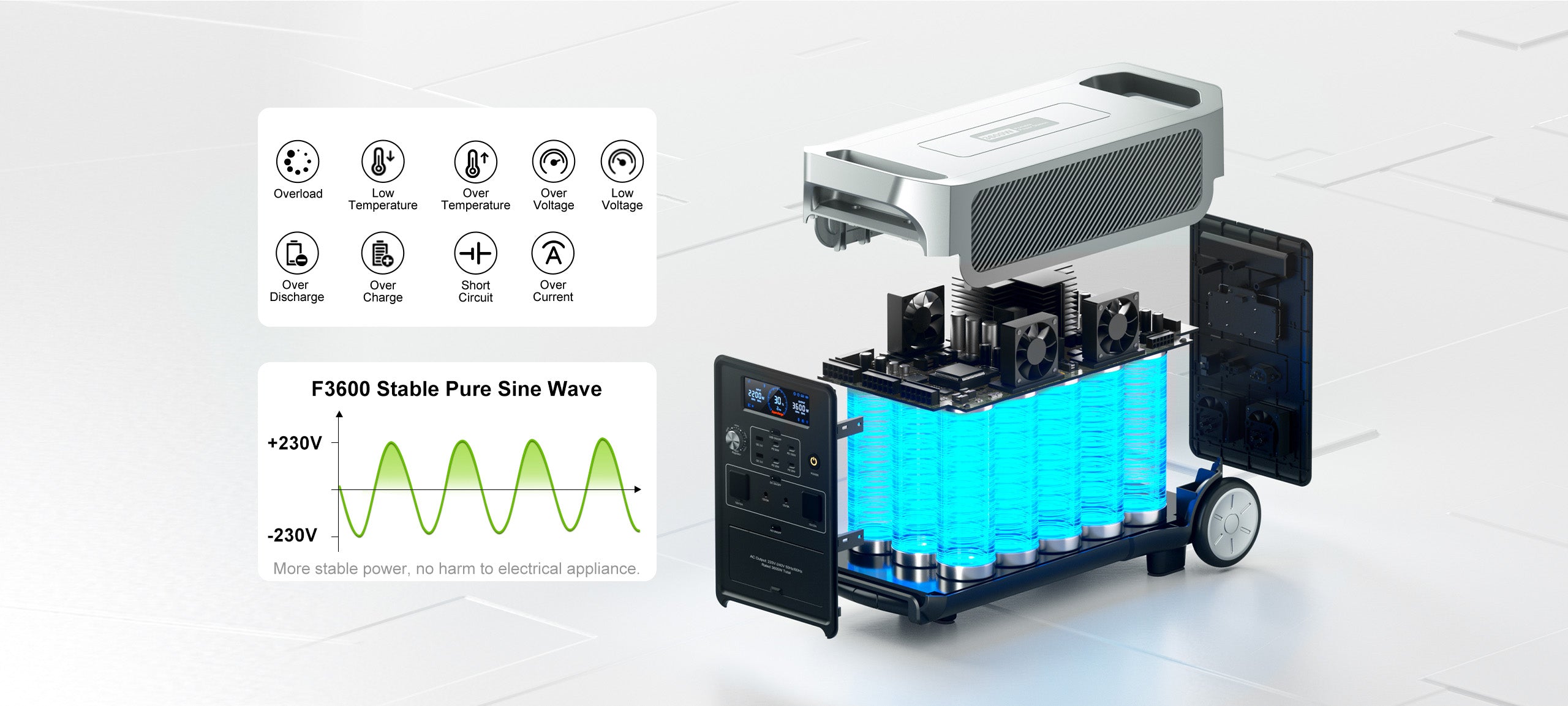 F3600 Proポ一タプル電源は、3840Whから11520Whまでバッテリ-を張可能で、家庭のバックアップ電源としても、アウトドアの冒険にも、信頼性の高いエネルギ-を供給します。