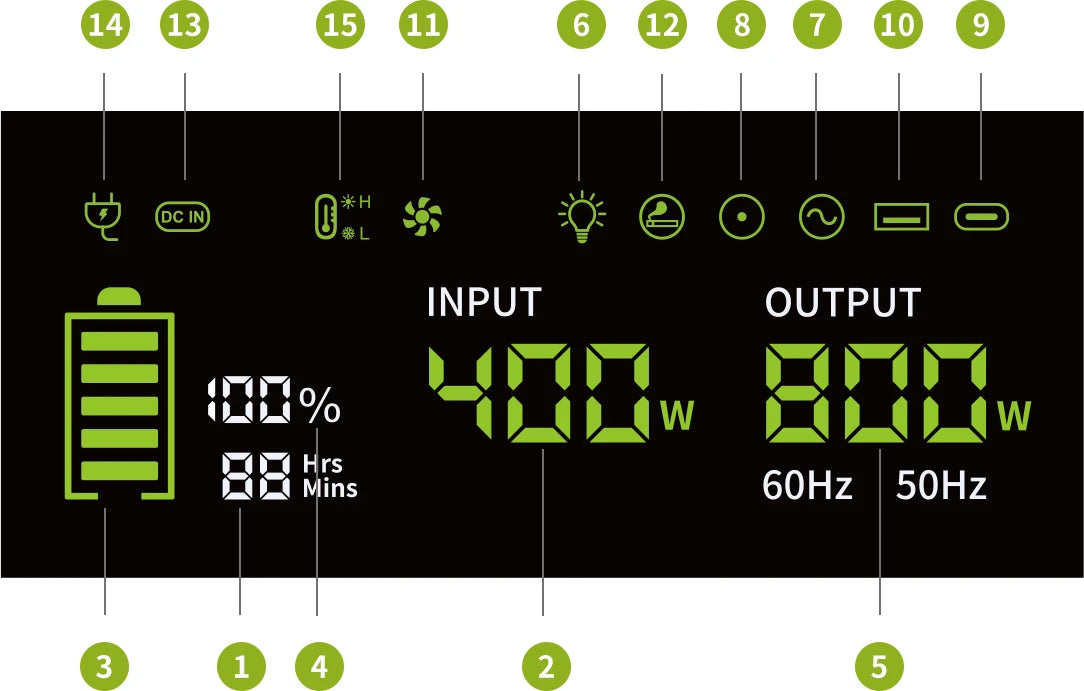 FOSSiBOTポータブル電源F800は、待機時においてAC出力とDC出力の消費電力が一般的なポータブル電源よりも低く、8時間使用されない場合には出力が自動的にオフに切り替わります。省エネルギーな運用が実現されています。
