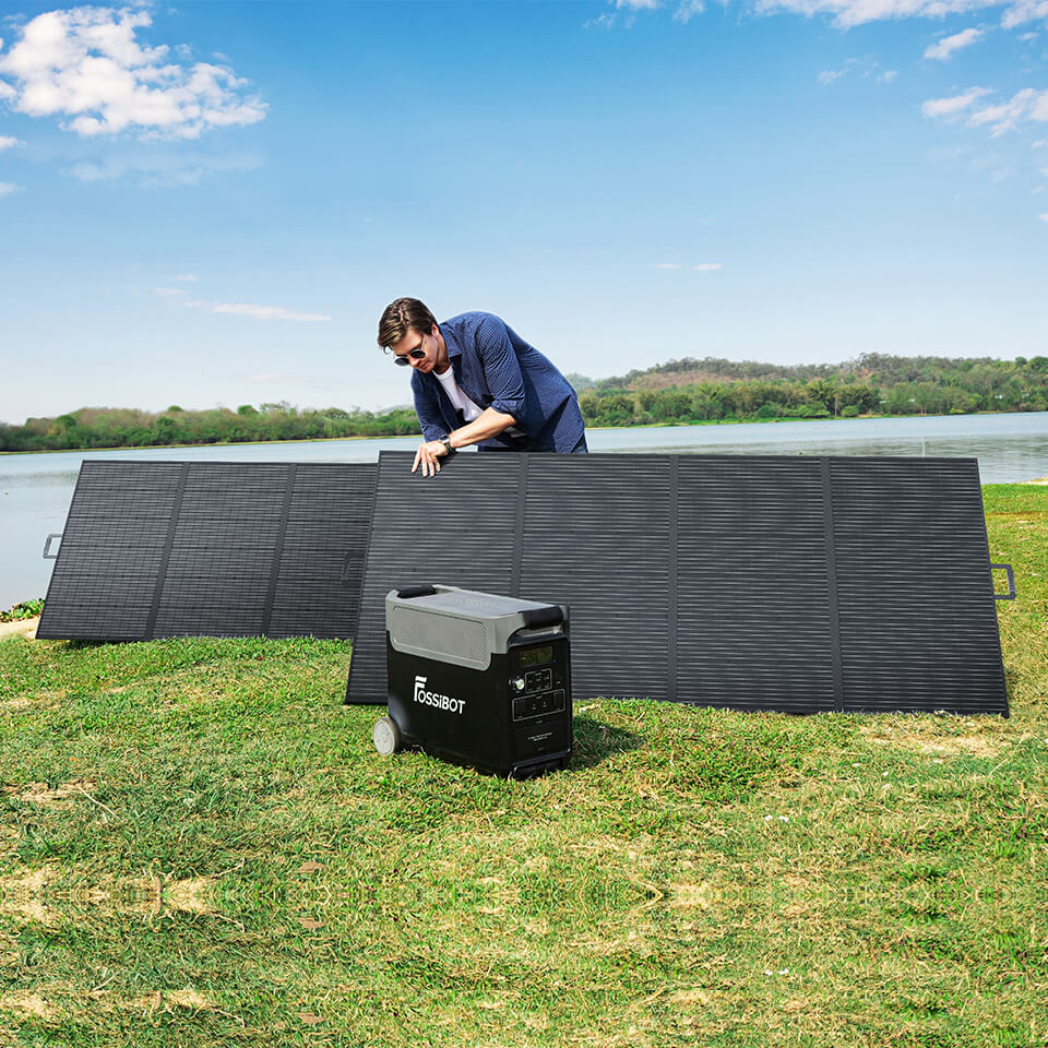SP420 は FOSSiBOT F3600 に最適です。 F3600 ソーラー発電機を充電するための最大電力に達するには、4*SP420 を接続します。