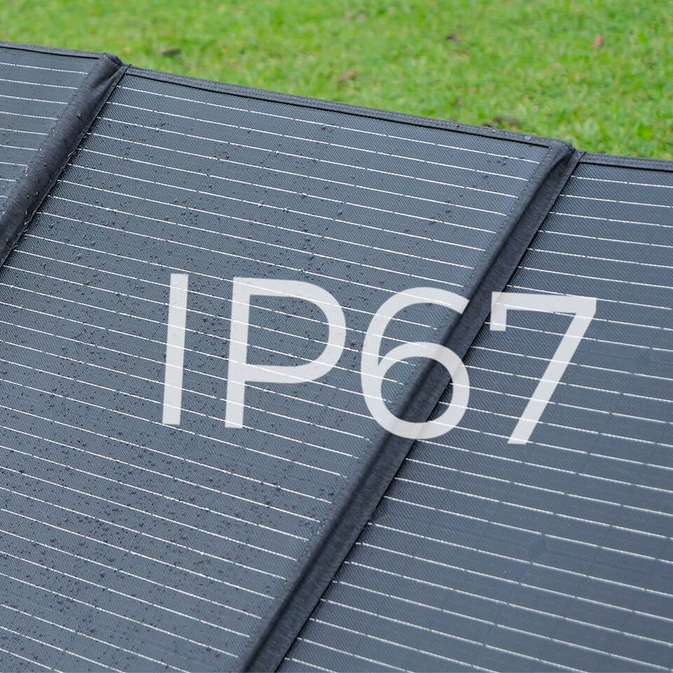 - 【最新型ETFE素材採用】 可視光透過率の高いETFE素材を採用しています。ETFE素材は他のフッ素樹脂と比べて塗膜厚が厚く、耐熱・耐食などにも長けており、耐久性が求められる工業用部品などにも用いられています。長く日光に当ても高温を恐れず、燃焼や爆発の危険がありません。防水機能はIP67防水等級となっており、通常の小雨や小雪には問題なく使用できます。豪雨や浸水などには完全防水ではありませんので、耐えられません。ソーラーパネルの寿命長持ちするため、使用時湿気及び濡れないようにご注意ください。
