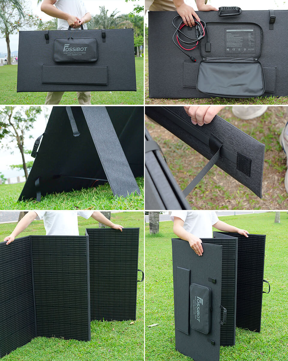 - 【FOSSiBOT SP420 簡単設置】 折りたたんだソーラパネルを展開し、4つのスタンドを広げるだけですぐに設置することができます。付属のスタンドは、太陽に向けて角度を調整しやすく、散熱効果も得られます。